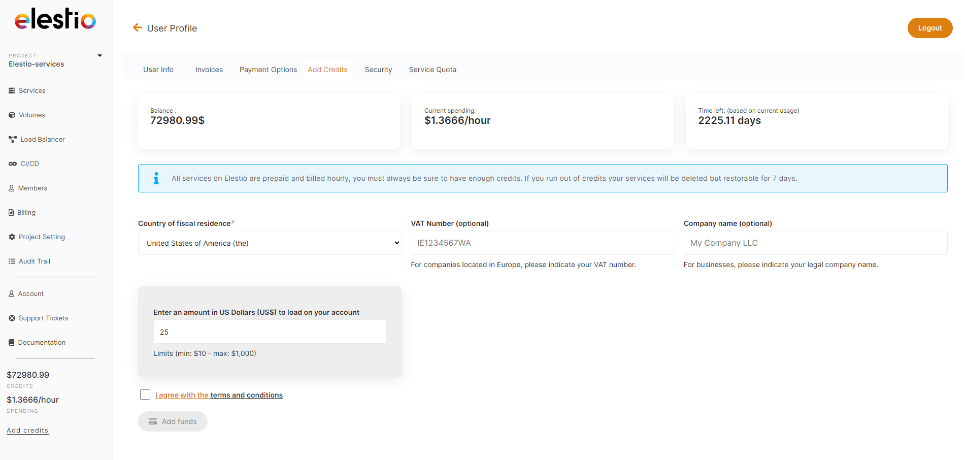 - You'll need to add credits to your account to keep all the services you've deployed.