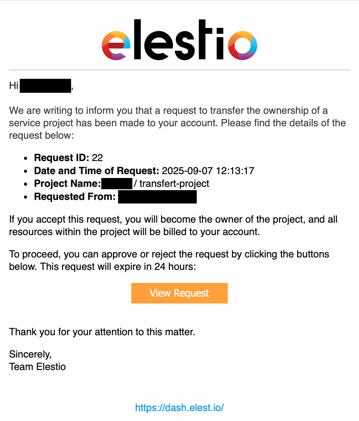 This guide explains how to transfer a project ownership from one Elestio account to another.
