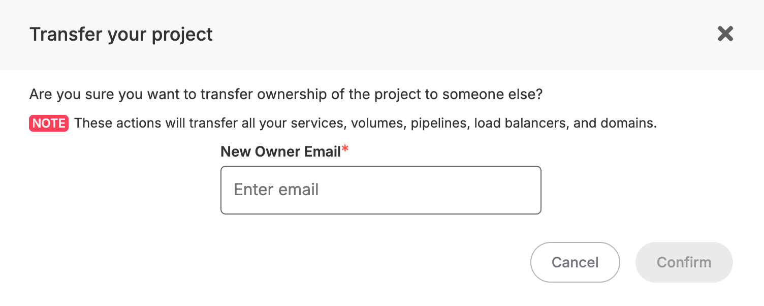 - The new owner must be added as a member in the project with Admin or Billing Admin role
