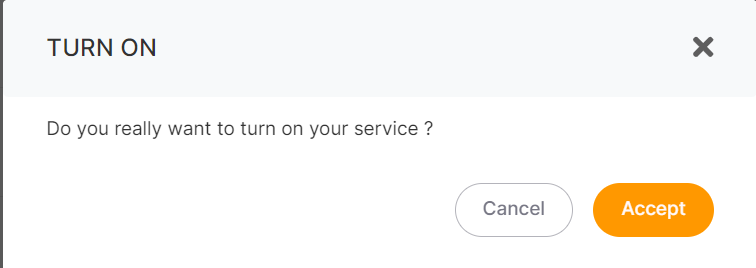 Step 3: Activate the service by clicking the "Power On" button. A confirmation prompt will appear; proceed by clicking the "Accept" button to confirm the action.
