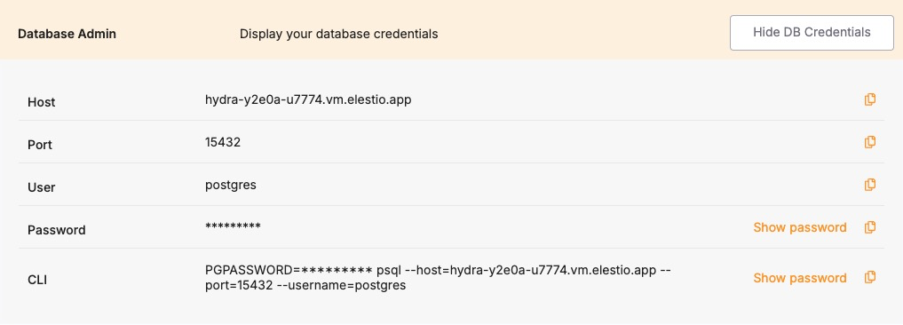 By default, Elestio provisions a single database instance. However, if you wish to restore into a separate database name or if your dump references a different name, you must create the new database manually. Use the psql client to connect to your Elestio service using the credentials from the dashboard.