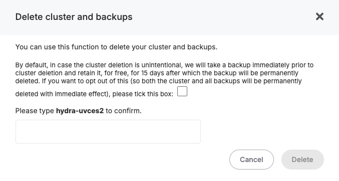 The dashboard may prompt you to confirm the operation. After confirmation, Elestio will begin the decommissioning process. This includes detaching the node from the cluster, cleaning up any residual state, and terminating the associated virtual machine.