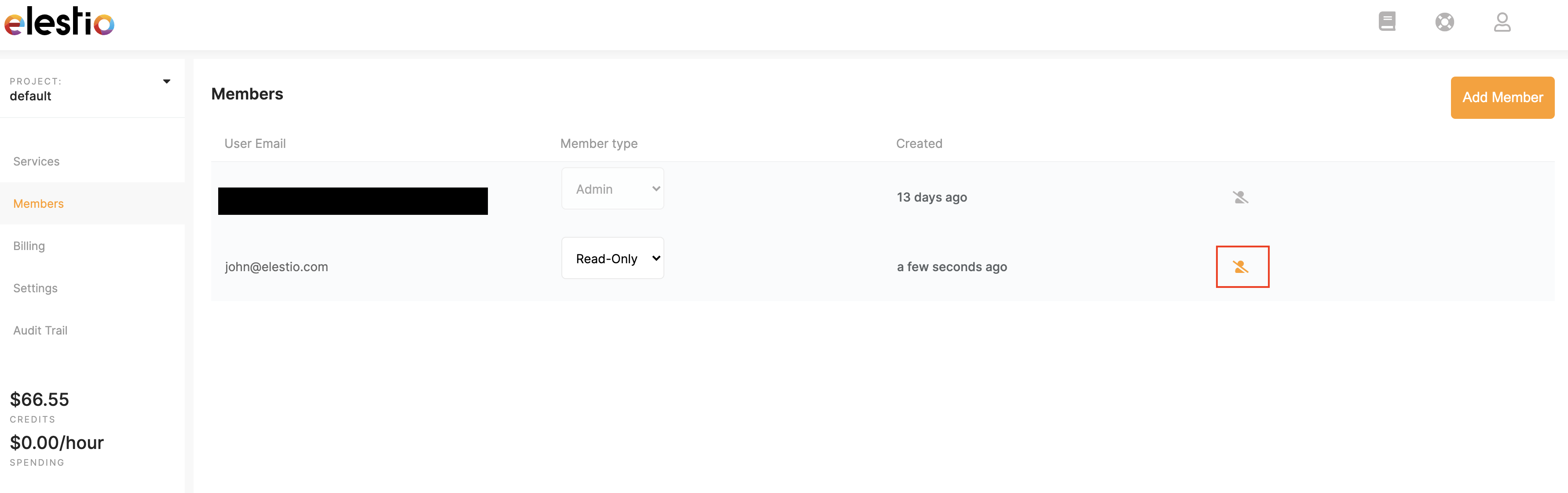 Deleting a member from the elestio dashboard only removes their access to elestio, not your deployed services.