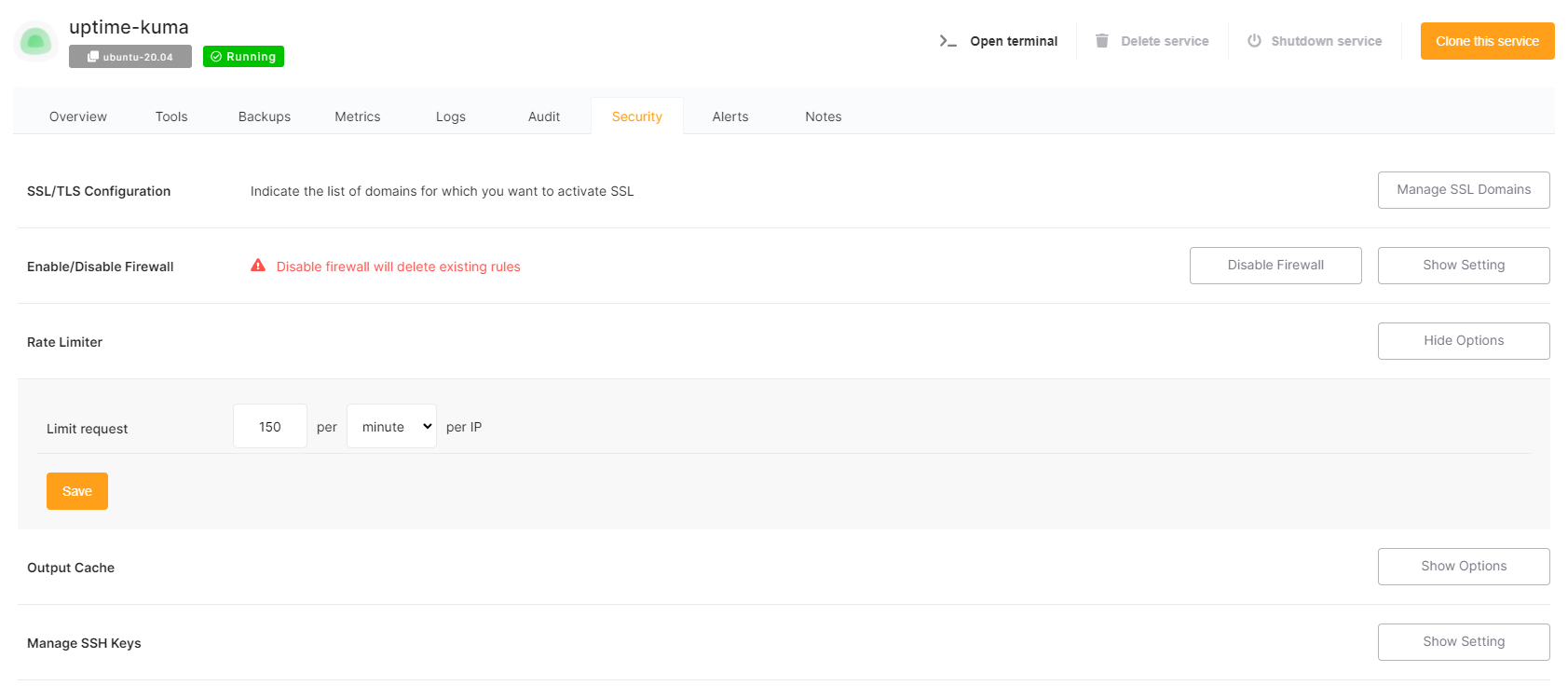 From here, you can easily modify and adjust your service's rate limiter configurations, by amount and per minute or second, per IP address.