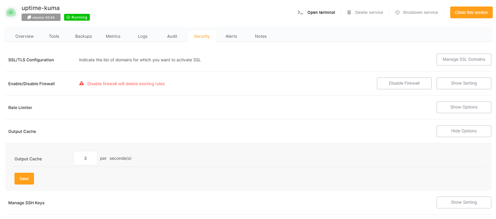 From the Dashboard, navigate to the Security tab and select Show Options under Output Cache.