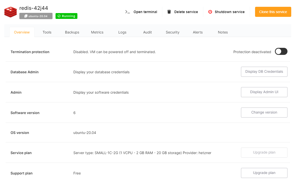 From the service overview, click on "Upgrade plan" on the support plan row to change your support plan: